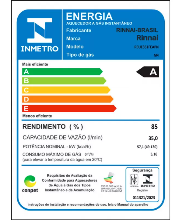 Gás Natural (GN): 35 l/min