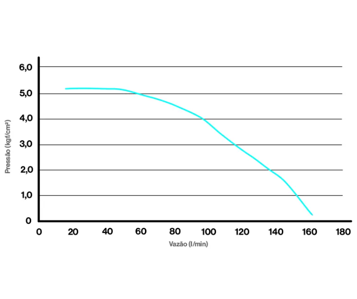 | Pressão máxima de trabalho | 5,0 kgf/cm² |